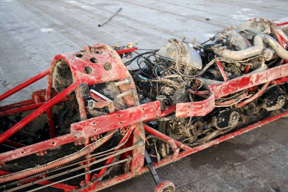 tumble late in the first day of competition at Mike Cook’s Landspeed Shootout. The team